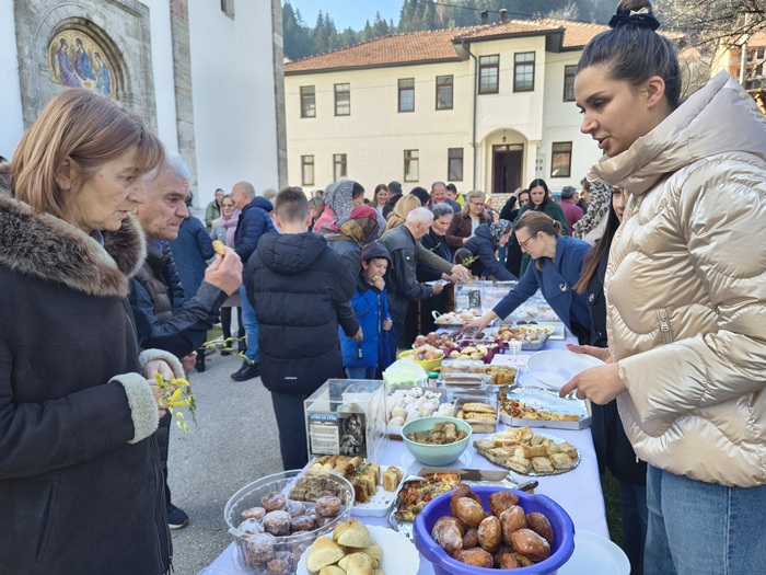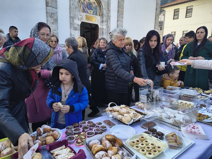 Празнична трпеза сервирана је након Свете литургије. Поред крофни на њој су се нашле и многе друге слане и слатке ђаконије, служили су се и кафа и чај, а у припреми посластица учествовало је двадесетак девојака и жена. Могао је да се послужи ко год је хтео и да према својим могућностима остави добровољни прилог. Занимљиво је да су се поред новца, међу даровима нашле и једне вунене чарапе.