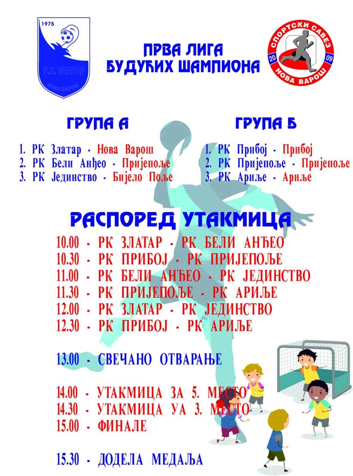 У недељу 19. маја у Новој Вароши се игра Прва лига будућих шампиона у мини рукомету за дечаке 2013. годиште и млађе. Домаћини турнира су Рукометни клуб Златар и Спортски савез Нова Варош.