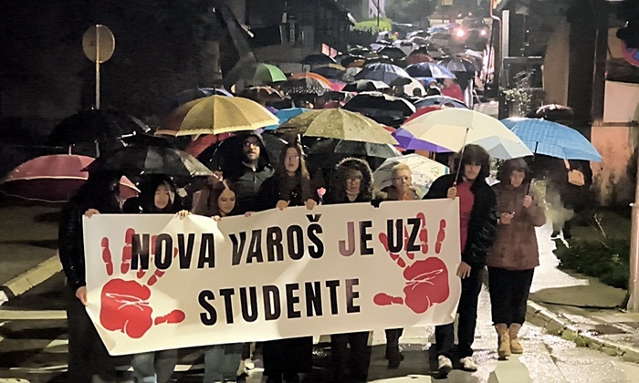 Како је саопштено, протест који је одржан синоћ у Новој Вароши организовали су „грађани који подржавају студенте у њиховој борби за боље и праведније друштво“. Окупљени су упутили и подршку захтеву студената да се распишу ванредни парламентарни избори.