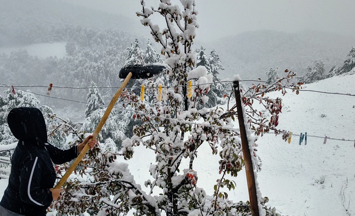 Мештани кажу да је влажан снег почео да ломи шуму и воће на коме је још зелен лист, али се и надају да ће падавине окрепити изворишта воде, која су одавно утањила или потпуно пресушила.