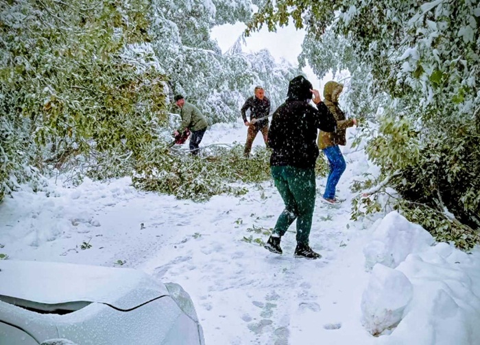 Снег који је почео прекисноћ и даље пада, па је дебљина снежног покривача у граду око 15 центиметара, а на планинама га има знатно више. Влажан снег ломи стабла у шуми на којима се још зелени лист, и кида електроводове, па је велики број села синоћ и јутрос остао без струје. Како су представници Електродистрибуције у Новој Вароши известили чланове Штаб за ванредне ситуације, све екипе су на терену, а очекује се и долазак у испомоћ монтера из Ужица, Пожеге и Бајине Баште.