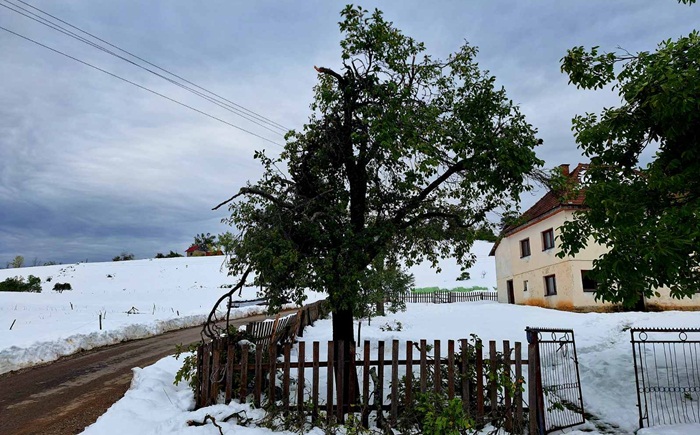Снег је поломио и воће. Лишће још није почело ни да жути, па је тежина покривача преко мере оптеретила још зелене крошње и скршила многе засаде шљива. Страдале су крушке, јабуке и ораси, а посебено вишње, трешње и дуње, чија су стабла тања и нежнија.