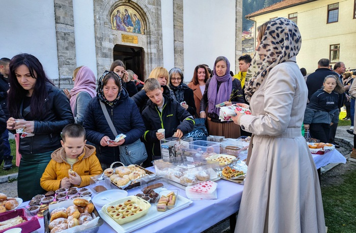 Празнична трпеза сервирана је након Свете литургије. Поред крофни на њој су се нашле и многе друге слане и слатке ђаконије, служили су се и кафа и чај, а у припреми посластица учествовало је двадесетак девојака и жена. Могао је да се послужи ко год је хтео и да према својим могућностима остави добровољни прилог. Занимљиво је да су се поред новца, међу даровима нашле и једне вунене чарапе.